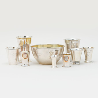 POKALER OCH SKÅL, 9 delar, silver, vikt ca 630 gram.