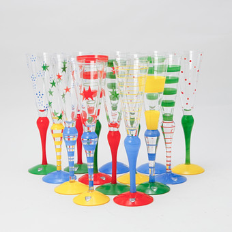 ANNE NILSSON. Champagneglas, 14 st, "Clown", Orrefors.