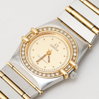 ARMBANDSUR, Omega, Constellation, guld/stål, diamantkrans, quartz, ca 1993.