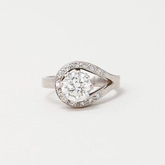 RING, 18k vitguld, briljantslipad diamant 1.15ct samt 13 diamanter 0.10ct, Lennart Magnusson, Göteborg 1986, vikt ca 5,5 gram.