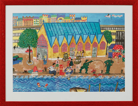 MARIKA LANG. "Feskekörka", färglitografi, signerad och numrerad 159/360.