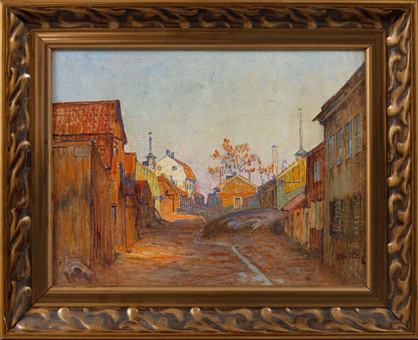 AXEL PETER. Gatubild, olja på duk, signerad.