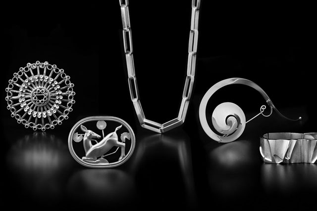Vad skall man göra när guldpriset rusar i taket och behovet att smycka sig överstiger den likvida förmågan. Jo, man satsar på formgivning och exklusivt hantverk istället. Till priset för ynka 5 gram guld kan du få ett handgjort collier av Göteborgssmederna Karl-Ingemar Johansson eller Margareta Högberg. För 10 gram guld kan du få ett armband av Lundasonen Wiwen Nilsson. Andra smyckeformgivare vi gillar och efterfrågar till vår specialauktion är bland andra: