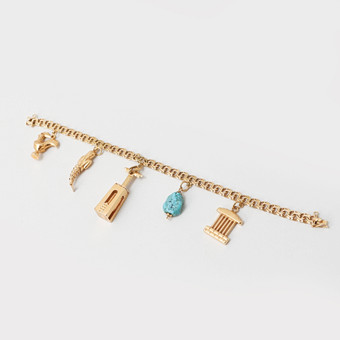 ARMLÄNK med BERLOCKER, 18k guld, turkos, totalvikt ca 25,7 g.